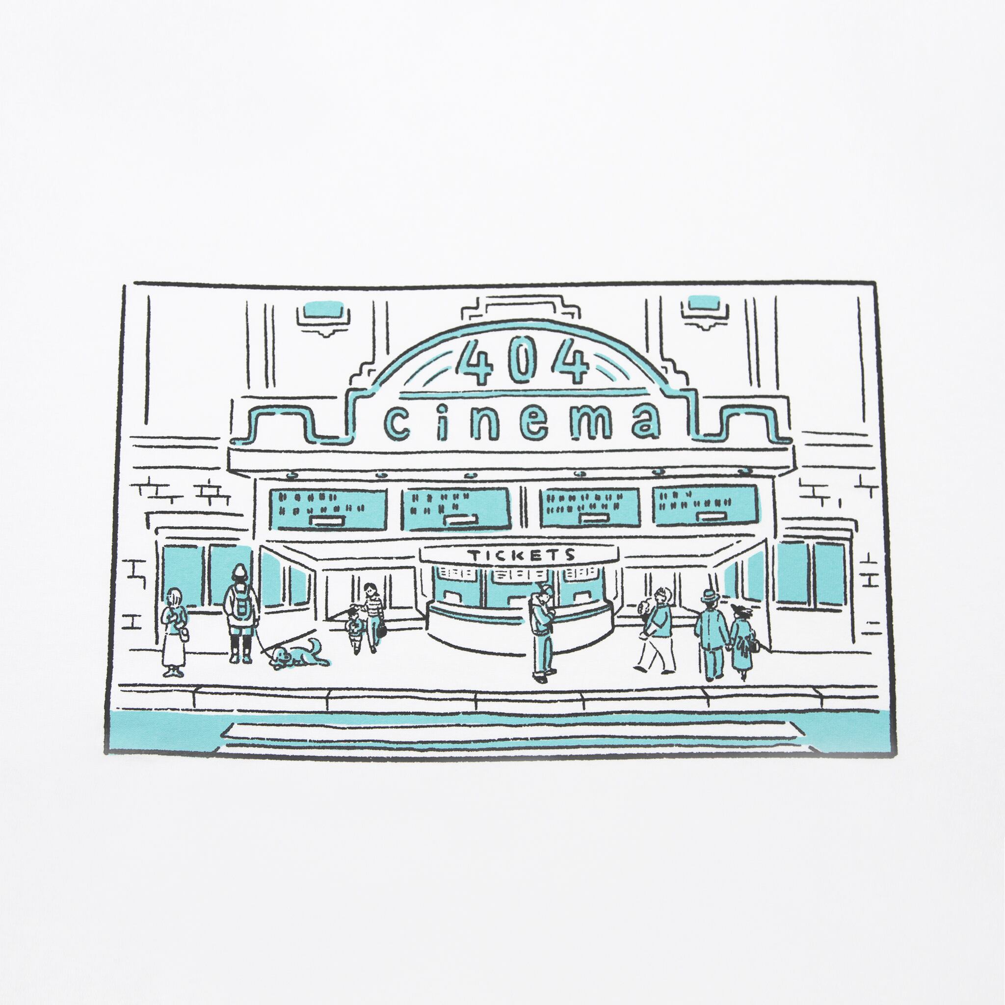 イラストレーター”さえきけんすけ”による404cinema外観をイメージしたデザイン。